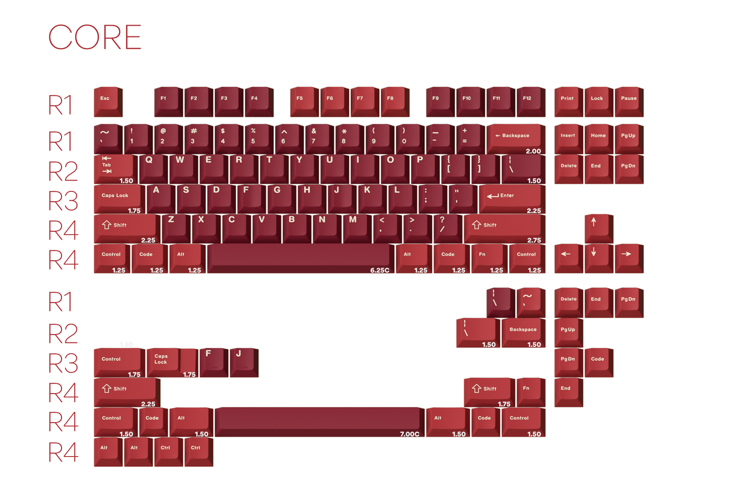 One of my goals for this project was to reach the $99.99 pricepoint for the Core kit at 500 units sold, this isn’t an easy task, and it required to optimize the kit as much as we could. By doing this, we not only make the set more accesible to newcomers compared to other custom sets with bigger base kits, but we can also benefit those with 40% or ergo keyboards.