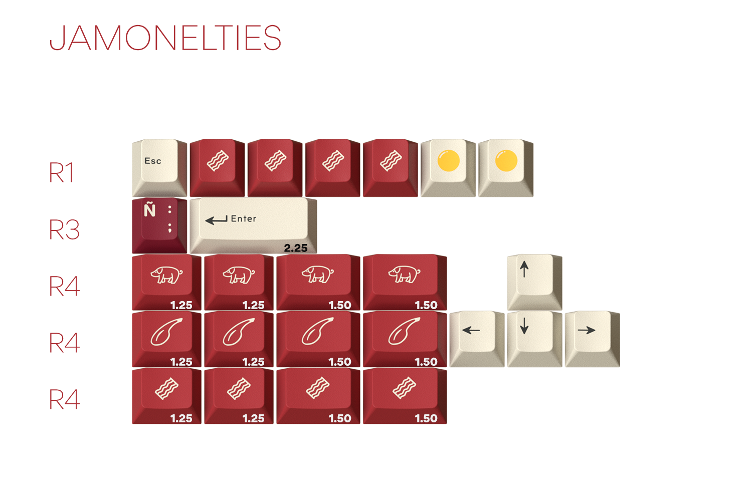GMK Jamón, which has been inspired by a type of cured ham from Spain, is structured around a Core kit that provides basic compatibility for both standard and non-standard keyboards that range from 60% to TKL.