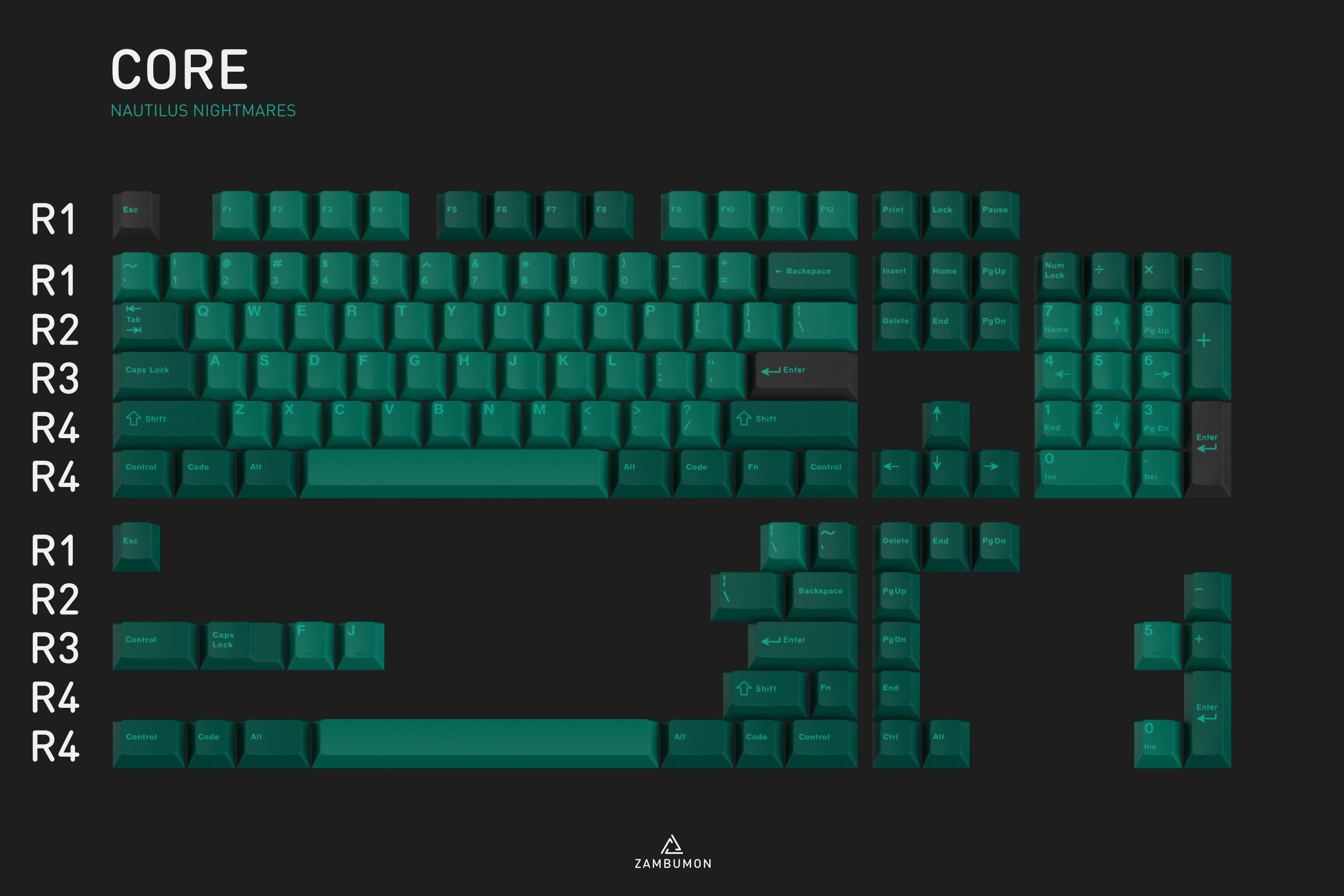 The Core Kit is the starting point for everyone. Composed by 136 keys, it provides basic layout coverage for boards ranging from 60%, 65%, 75%, TKL, 96-key, 1800, CP and Fullsize layouts in both standard and winkeyless variants.