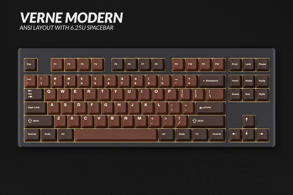 - Verne Modern: the standard American layout, with a 6.25U spacebar and seven 1.25U modifier keys on its bottom row.